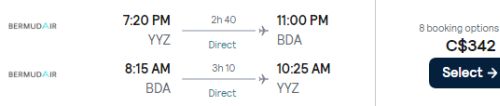 - Search for a flight from Toronto (YYZ) to Hamilton, Bermuda (BDA)
