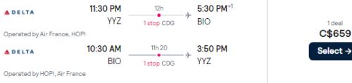 3. Search for a flight from Toronto (YYZ) to Bilbao, Spain (BIO)