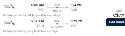 American Airlines has dropped the price of their Business Class flights from Toronto to Cancun, Mexico down to $771 CAD roundtrip including taxes.