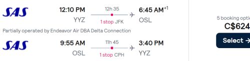 Scandinavian Airlines and Delta have dropped the price of their flights from Toronto to Oslo, Norway down to $624 CAD roundtrip including taxes.