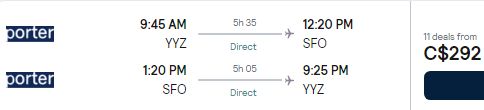 Porter Airlines has dropped the price of their flights from Toronto to San Francisco, California down to $369 CAD roundtrip including taxes.